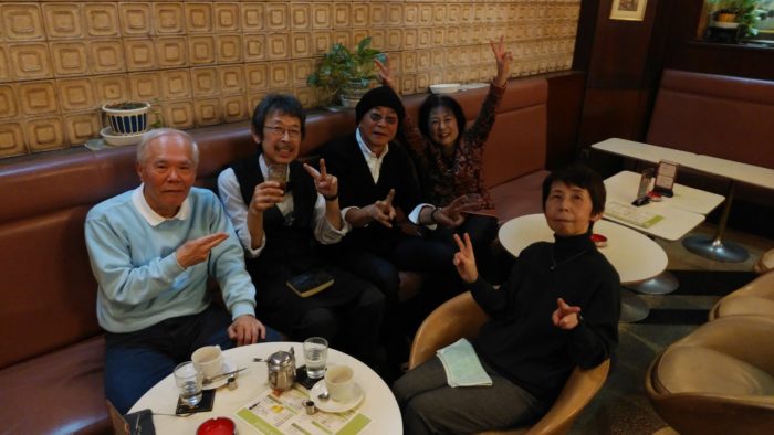 兵庫県の三木から梅田まで、ヒデが来てくれました。ヒデのために発注していたギターがやっと届き、今日手渡しました。このギターは、小型で持ち運びが楽で来年は二人の練習に活躍することでしょう。カラオケ教室のMさん、Nさんとヒデとで、おでん屋さんに行った後は、やはりここマヅラで盛り上がりました。