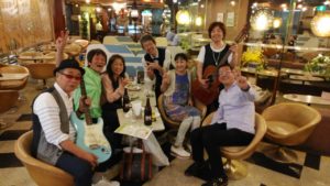 写真左から(yukky、ヤンちゃん、あっちゃん、マヅラチーフいつもの永井さん、MC曽和ローズさん、かずみさん、M氏)