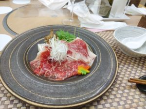 宿泊はTOTOシ―ウインド淡路。建築家安藤忠雄氏の設計建設のリゾートハウス。夕食の松茸土瓶蒸し。牛肉のしゃぶしゃぶ。