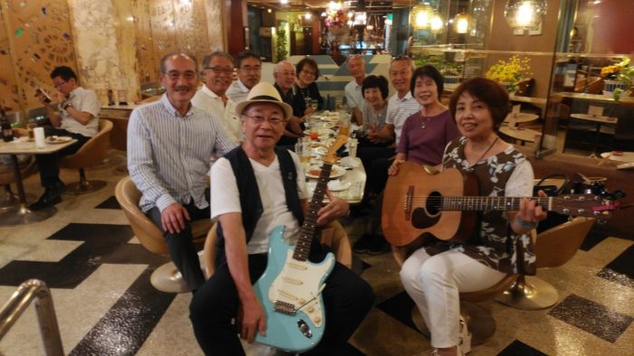 大阪駅前第一ビル地下一階の喫茶マヅラの定例ライブに、関西学院大学クラシックギタークラブの一年後輩の人たちが来てくれました。50年ぶりに会う人がほとんどでした、一気に心は学生時代に戻りました。楽しい時を過ごすことができました。みなさん、ありがとうございました!