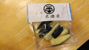 お土産は泉州名物水なすの漬物。